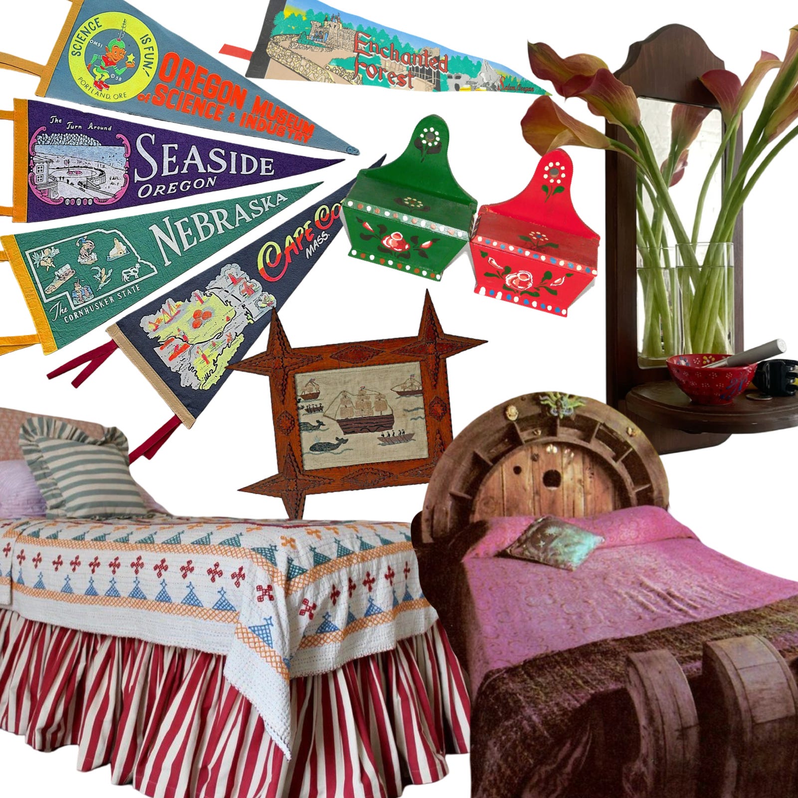 Wall stuff that isn’t flat (eg. pennants, match holders, sconces)