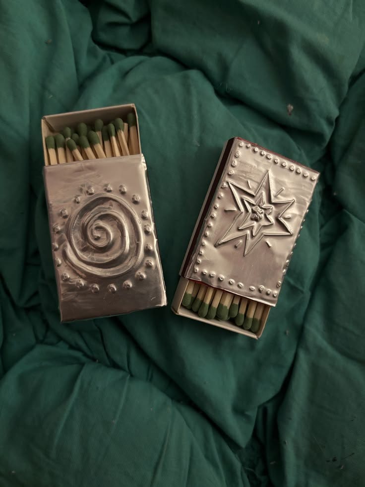 and embossed tin matchbook covers. More scheming here.